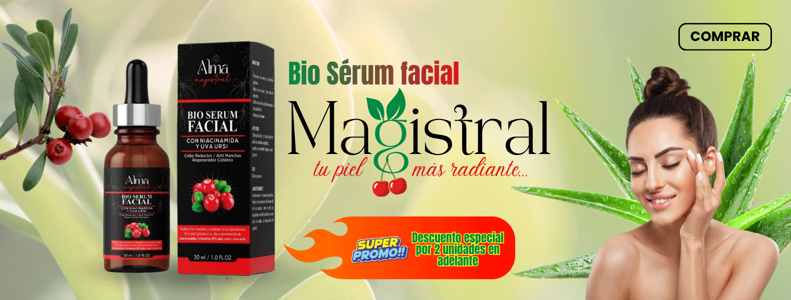 No esperes más para disfrutar de una piel radiante y rejuvenecida. Compra tu Bio-Sérum Facial Magistral hoy y experimenta todos sus beneficios. Aprovecha el envío totalmente gratis por tiempo limitado. ¡Tu piel te lo agradecerá!